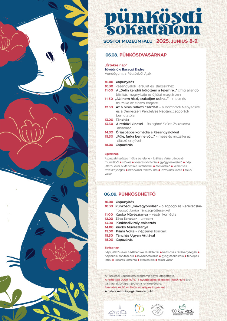 A Sóstói Múzeumfalu Pünkösdi Sokadalma idén is tartalmas és értékőrző programokat kínál a látogatóknak. A két nap során lovaskocsikázás, térképes játék, étel- és gyógyteakóstoló, valamint falusi vásár is színesíti a rendezvényt. A hagyományok élményszerű bemutatása minden korosztály számára tartogat értékes pillanatokat – a szervezők ezúton is várnak minden érdeklődőt.