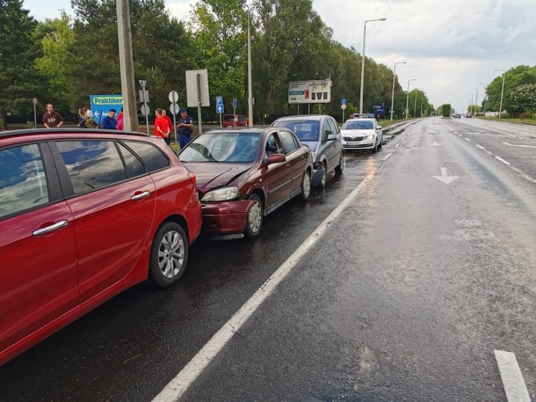 Ráfutásos baleset történt az Orosi úton. Két gépjármű vezetője lassított, a mögöttük érkező harmadik viszont ezt későn észlelte, és a nedves úton beléjük csúszott. Személyi sérülés nem történt, de komoly anyagi kár keletkezett. A helyszínelés idejére a szélső forgalmi sávot lezárták.