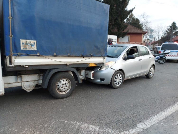 Ráfutásos baleset történt, a Derkovits utcáról próbált a Tiszavasvári útra kanyarodni egy jármű, amikor egy személyautó hátulról belehajtott.