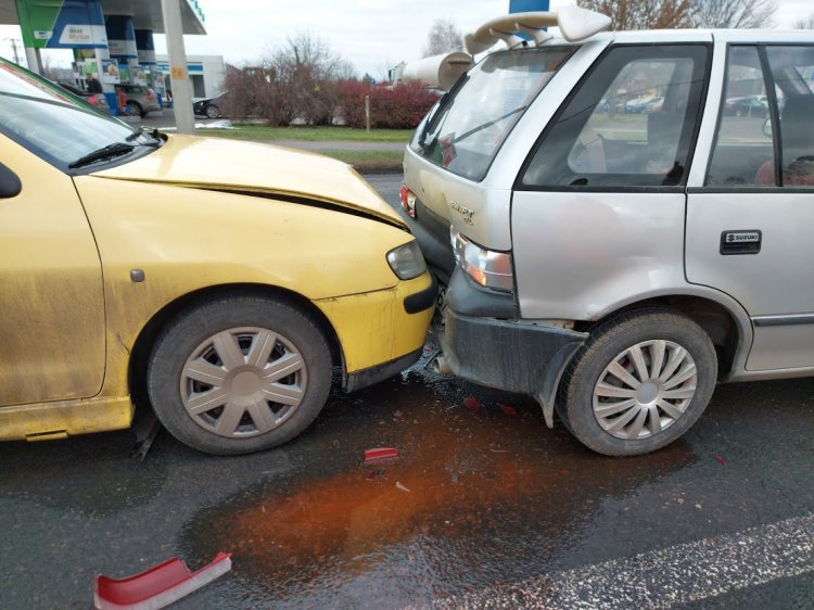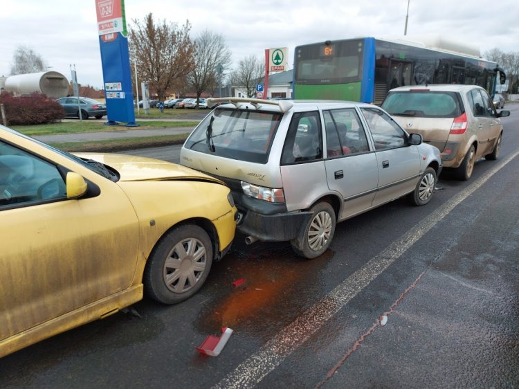 Ráfutásos, hármas karambol történt csütörtökön a Tiszavasvári úton