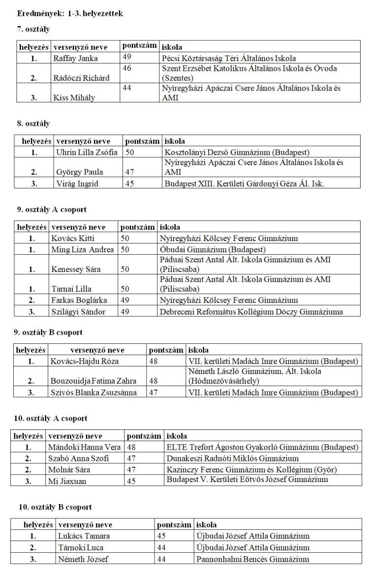 Az elért eredményről a versenyzők és a felkészítő tanárok 2023. március 24-ig kaptak értesítést.