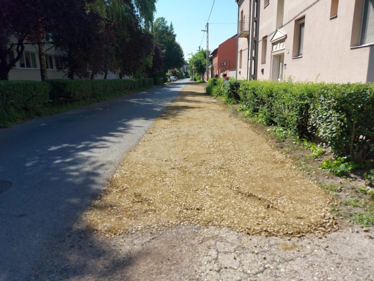 A társaság szakemberei forgalomkorlátozás mellett dolgoztak és zúzott követ raktak le.