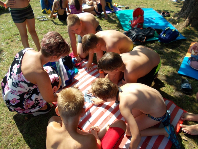 A Szabolcs-Szatmár-Bereg Megyei Rendőr-főkapitányság Bűnmegelőzési Osztályának munkatársai úszó táborban résztvevő gyermekeknek tartottak rendhagyó, interaktív előadást Nyíregyháza- Sóstógyógyfürdőn, a strand területén 2017. július 21-én. A gyerekek kikapcsolódás közben, közvetlenül a medencék mellett kaptak tájékoztatást az előadóktól a fürdőzés veszélyeiről, a parton hagyott értékek tárolásáról. Az előadók gondoskodtak a játékról is és a gyerekek szívesen vettek részt a bűnmegelőzési témájú puzzle összerakásában.