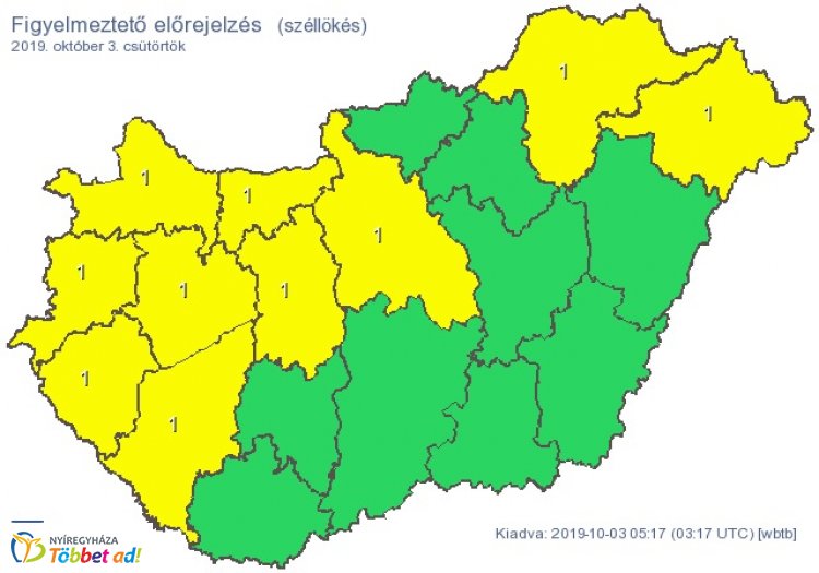 Pest, Borsod-Abaúj-Zemplén, Fejér, Győr-Moson-Sopron, Komárom-Esztergom, Somogy, Szabolcs-Szatmár-Bereg, Vas, Veszprém és Zala megyére ezért elsőfokú figyelmeztetést adott ki a szolgálat.