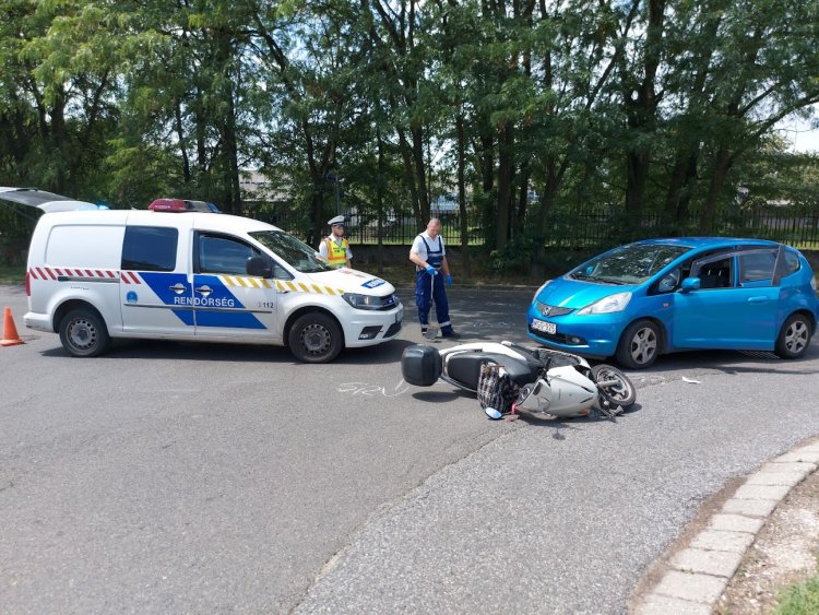 Egy robogó és egy személyautó karambolozott, pénteken kora délután Nyíregyházán.