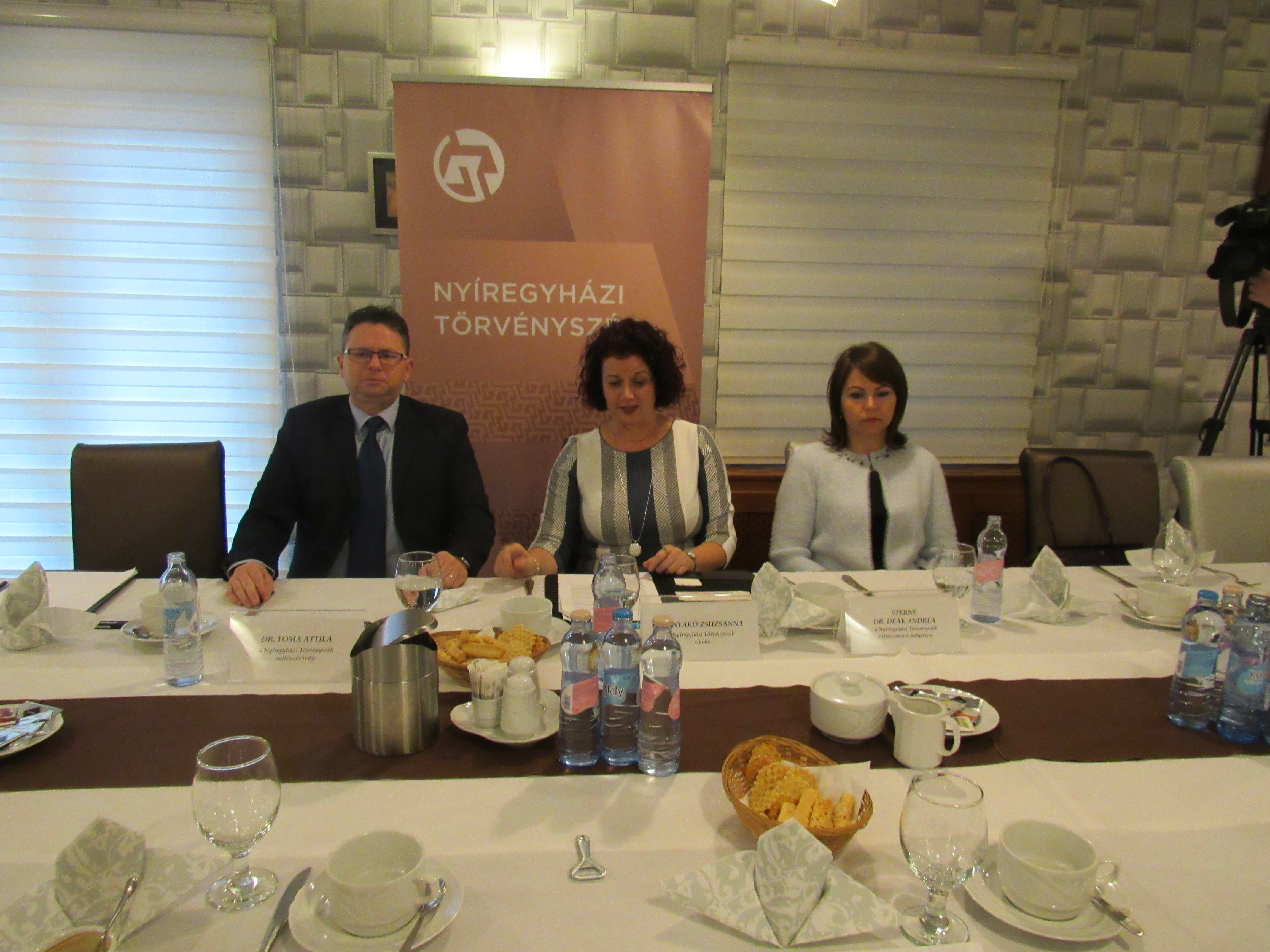 A rendezvényen dr. Nyakó Zsuzsanna, a törvényszék elnöke arról tájékoztatta az újságírókat, hogy az Országos Bírói Tanács első hatéves mandátuma lejárt, s örömmel jelentette be azt, hogy az újonnan megválasztott testület tagjai közé két bíró is bekerült a megyéből. Dr. Seres Lívia, a Nyírbátori Járásbíróság elnöke az Országos Bírói Tanács tagja, míg dr. Toma Attila, a Nyíregyházi Törvényszék bírája a tanács póttagja lett.