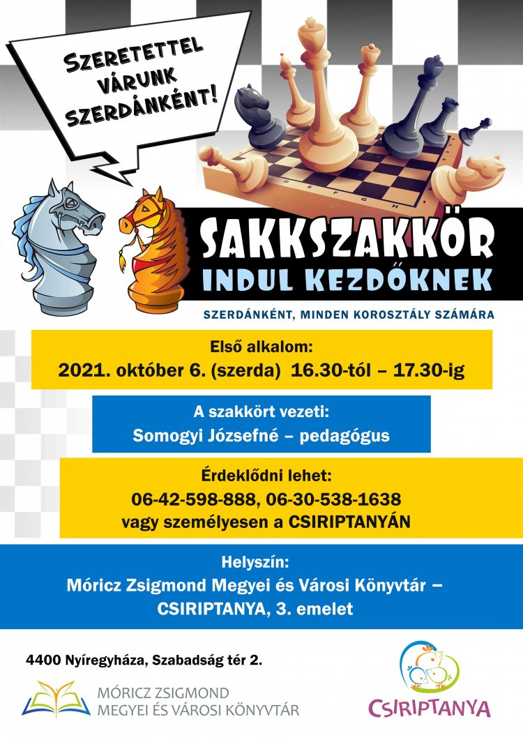 Sakkszakkör indul kezdőknek a Móricz Zsigmond Megyei és Városi Könyvtárban. Október 6-tól, szerdánként minden korosztályt várnak.