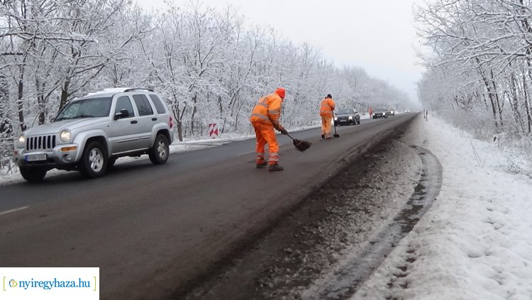 Nyírjestanya külterületén nagy mennyiségű sárfelhordás eltakarítását végezte a Magyar Közút Nonprofit Zrt. Az útszakaszon mindkét irányba kihelyezték a csúszásveszélyre figyelmeztető közlekedési táblákat.