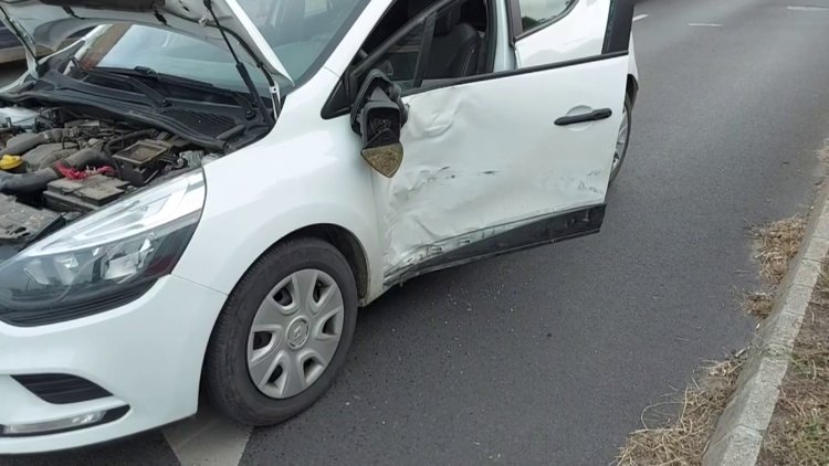 Autóbusz és személyautó ütközött az Inczédy soron. A személyautó feltehetőenszabálytalanul váltott sávot, ebből következett a baleset.