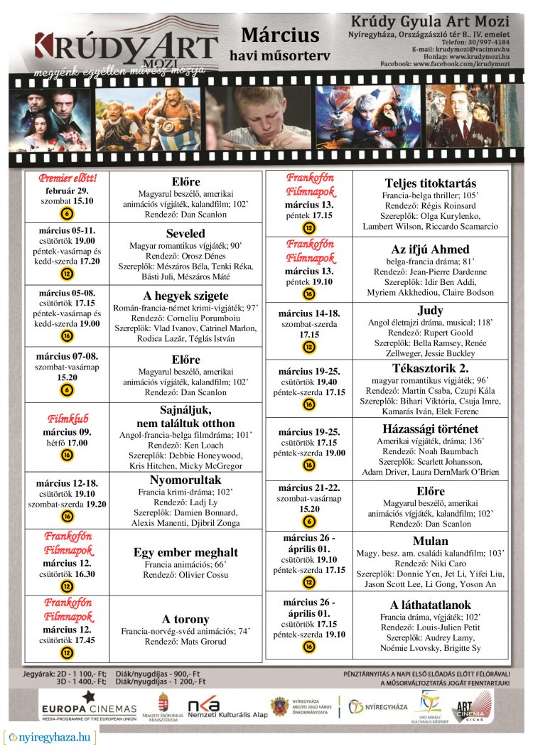 Márciusban is tartogat meglepetéseket a Krúdy Art Mozi a filmrajongók számára.