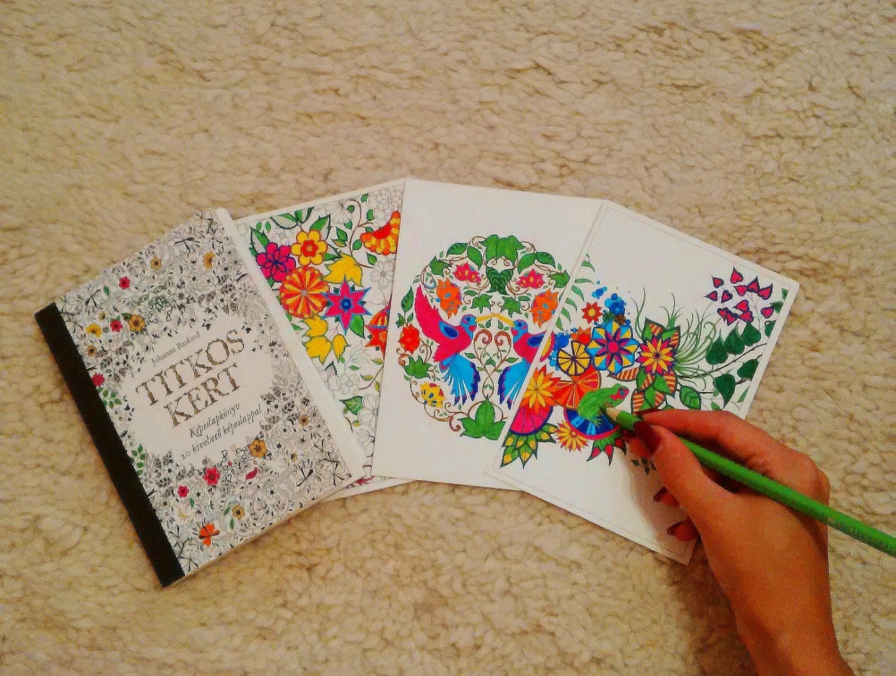 A színezőkönyvekről általában kedves gyerekrajzok jutnak eszünkbe, ez azonban valami egészen új, valami egészen más. A skót illusztrátor felnőtteknek szánt Titkos kertje már egy ideje felkeltette az érdeklődésemet, persze aztán jöttek a kételyek, mégis mit fog gondolni a többi vásárló, ha felnőtt létemre beállok a sorba egy kifestővel. Meg egyáltalán mit kezdek majd vele? Otthon a sok tennivaló mellett mindenre van idő, csak színezgetni nem, ha meg mégis, pont a szabadidőmet fogom ezzel tölteni? Hosszas tépelődés után azonban mégis képtelen voltam ott hagyni. Nem bántam meg.