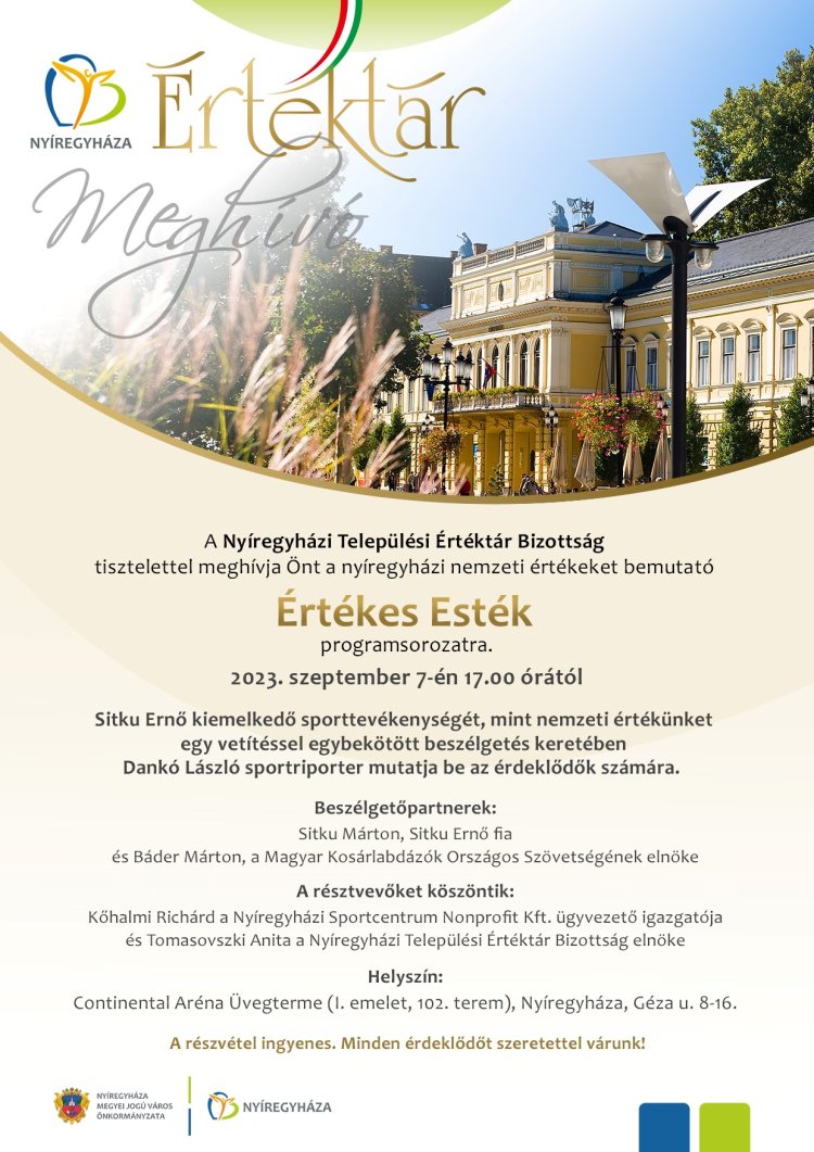 Nyíregyházi Települési Értéktár Bizottság „Értékes Esték” című progromjában ma Sitku Ernő örökségét méltatják.