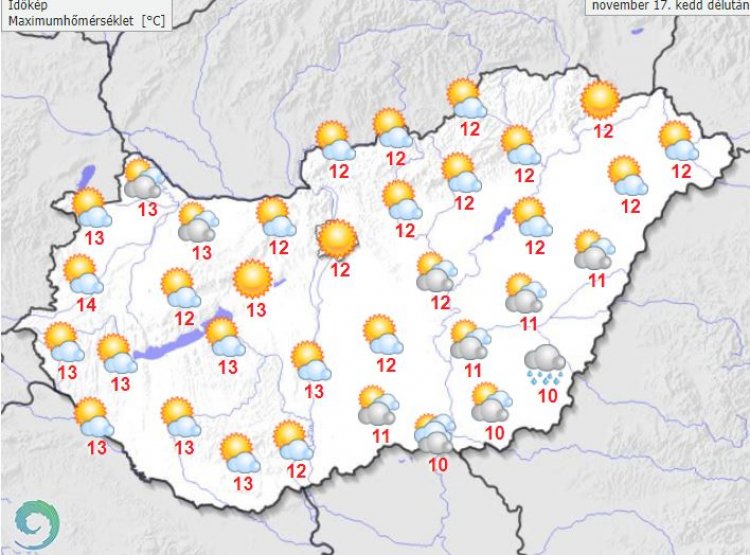 Az északnyugati, északi szél a Dunántúlon többfelé megélénkül. A legmagasabb nappali hőmérséklet 9 és 14 fok között alakul. Késő estére 3, 8 fokra hűl le a levegő.