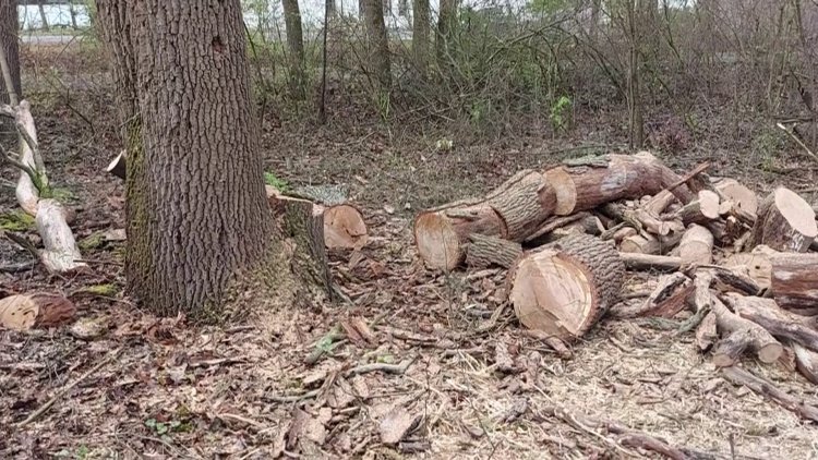 Sóstón, a múzeumfalu előtti útszakaszon a balesetveszélyes tölgyfákat vágták ki a NYÍRVV munkatársai