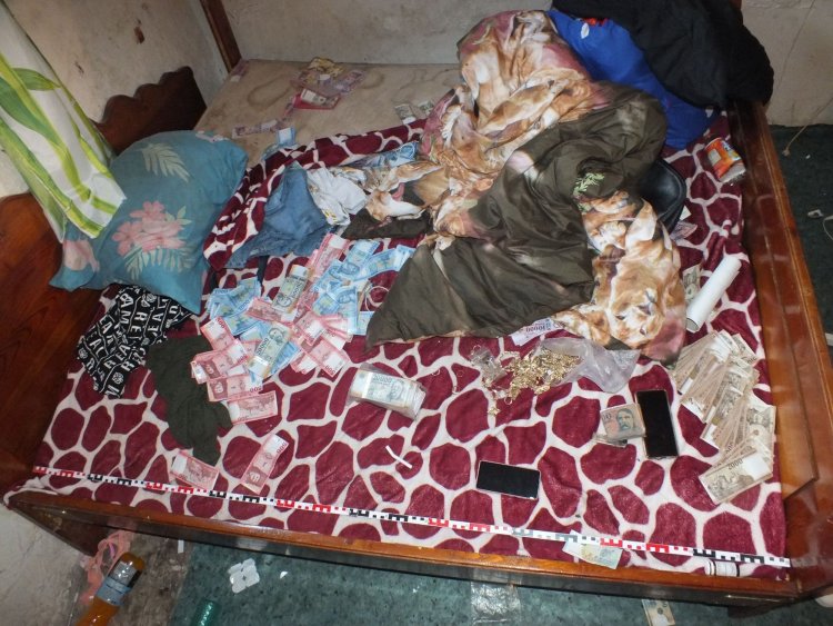 A rendőrök az egyik ágy mögött kialakított rejtekhelyen feltehetően a bűnös tevékenységből szerzett ékszereket, és közel tizenhatmillió forint összegű készpénzt is lefoglaltak, amitől a rendőrök érkezésekor a családtagok igyekeztek megszabadulni. A házfalon ütött nyíláson át próbálták az udvarra juttatni, ami csupán részben sikerült, így bent és kint is bankjegyek hevertek szerteszét.