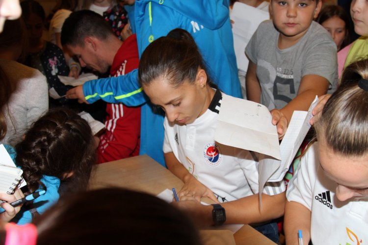 A vendégek élménybeszámolót tartottak pályafutásukról, amit a diákok csillogó szemekkel hallgattak és utána lelkesen és büszkén gyűjtötték be az autogrammokat.