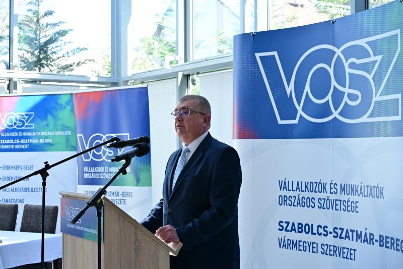 Jászai Menyhért alpolgármester köszöntőjében hangsúlyozta, Nyíregyháza számára a gazdaságfejlesztés továbbra is prioritás, mivel alapvető a város pénzügyi stabilitásának biztosítása. Kiemelte, a hazai kis- és középvállalkozások, a mikrovállalkozásoktól a nemzetközi cégekig, kulcsszerepet játszanak a gazdaság fejlődésében, és ezt a VOSZ-szal együttműködve támogatják.