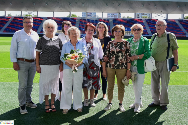 Jászai Menyhért alpolgármester az önkormányzat nevében köszöntötte a város friss díszpolgárát, Telepóczkiné Farkas Mártát, a tanács titkárát, aki kiemelte, azért fontos közelről is megismerni az új beruházásokat, hogy azokat hitelesen ajánlhassák az időseknek. Hozzátette, lenyűgözte a stadion, és a jövőben szeretné a mérkőzések hangulatát a helyszínen is átélni.