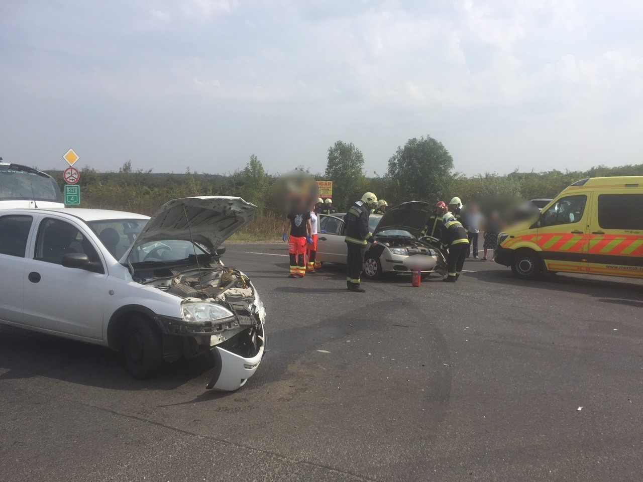 Két személygépkocsi ütközött össze hétfőn délben a 4-es és 403-as utak kereszteződésében, Nyírtura közelében.