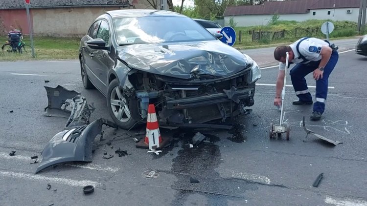 Egy személygépkocsi és egy motoros kanyarodás közben ütközött, a motoros 8 napon túl gyógyuló súlyos sérülést szenvedett. A mentők a helyszíni ellátás után kórházba szállították.