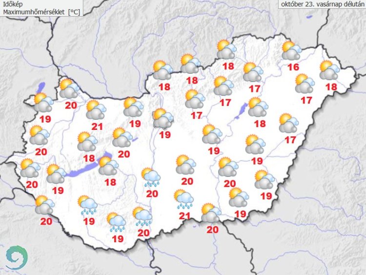 A legmagasabb nappali hőmérséklet 15 és 21 fok között valószínű. A késő esti hőmérséklet 8 és 17 fok között alakul.