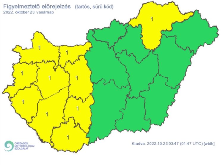 Tartósabb, sűrű köd elsősorban a Dunántúl nyugati, délnyugati felén és északkeleten valószínű. Délelőtt fokozatosan javulnak a látási viszonyok, a köd megemelkedik, feloszlik.