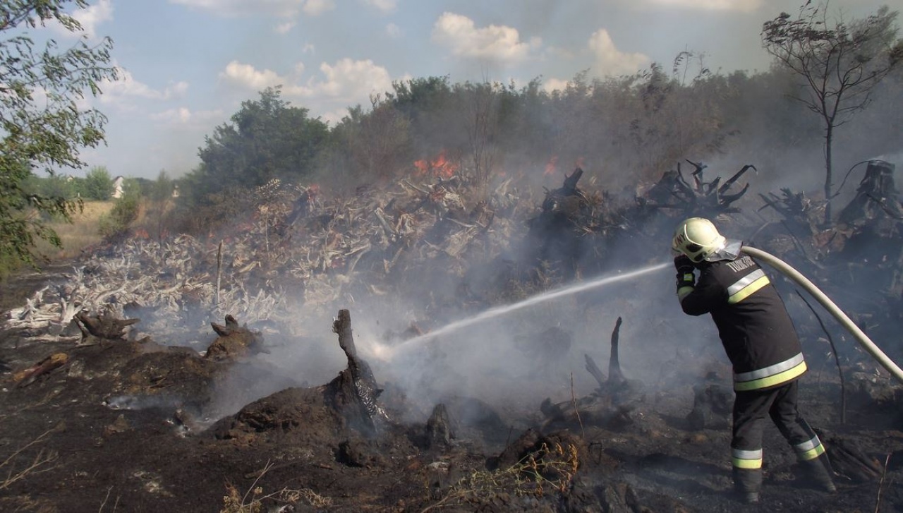 Háromhektáros területen a vágástéri hulladék, valamint százötven köbméter akácfa gyökérzet gyulladt ki hétfőn délután Nagykállóban, a Kossuth út mögötti területen.