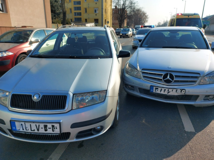 Szabálytalan sávváltás miatt összeütközött két személygépkocsi kedd délután az Inczédy soron.