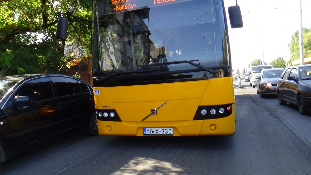 Egy személygépkocsi szabálytalanul váltott sávot a Mező utcán, melynek következtében egy szabályosan haladó autóbusznak ütközött.