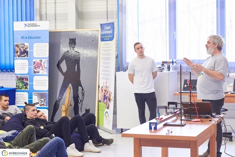 Debrecenből érkezett a National Instruments nevű amerikai cég magyarországi gyára képviseletében az együttműködő partner. Megmutat néhány olyan nagyon az élvonalba tartozó eszközt, ami az ő alapeszközeikre épül. Mi pedig azt mutatjuk meg, hogyan használjuk, ezeket.