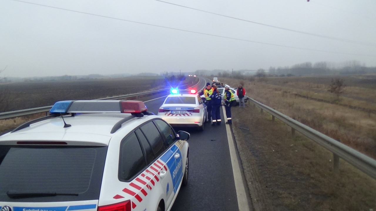 Reggel a 403-as elkerülőn egy személygépkocsi előzés közben nekiütközött a vele egy irányban haladó haszonjárműnek, majd a szalagkorlátnak csapódott.