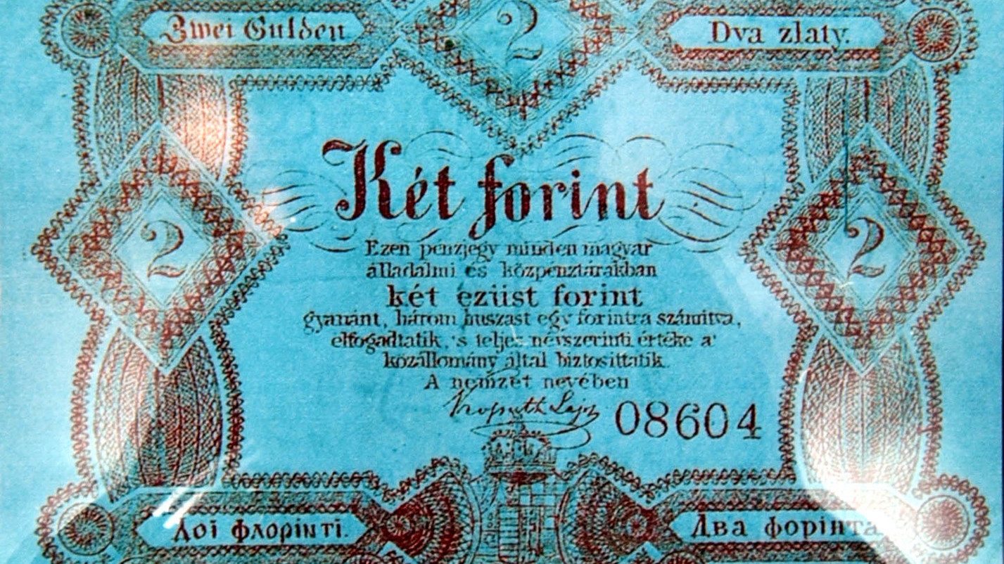 Az első önálló magyar papírpénzt Tyroler József rézmetsző tervezte, a hivatalosan forintnak nevezett fizetőeszközt a nép Kossuth-bankónak nevezte el, mert minden címleten szerepelt Kossuth Lajos aláírása. Az első kibocsátott címlet, a kétforintos Kossuth 1848. augusztus 5-én kelt hirdetménye után került forgalomba. A színe miatt „vöröshasúnak” nevezett bankón Völgyi Ferenc kincstári főpénztárnok és Rögler János bankfőpénztárnok aláírása is szerepelt, dátumot viszont nem nyomtattak rá. A szintén augusztusban kibocsátott egyforintos csak októberben került forgalomba.