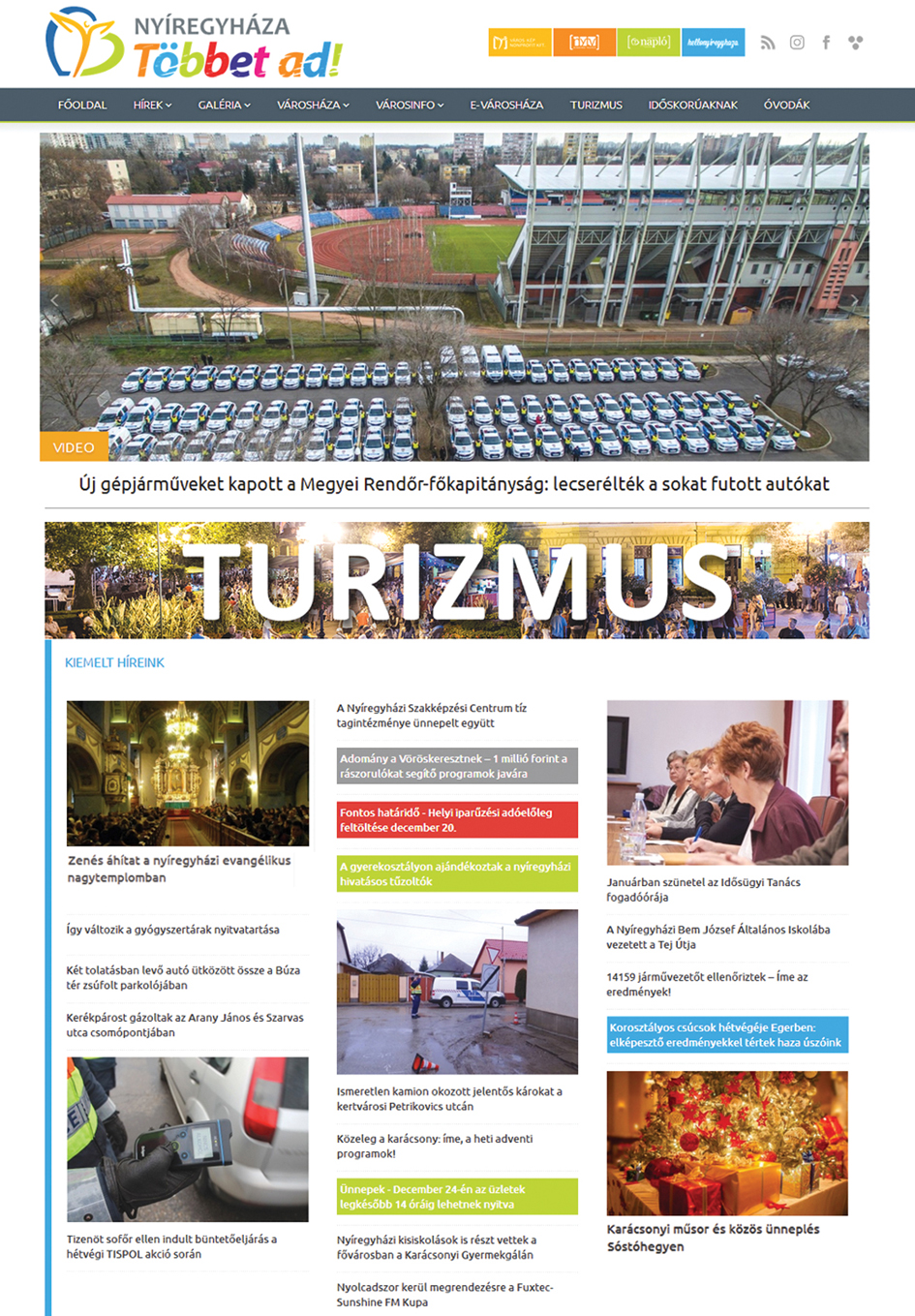 A korábbi, fontos, önkormányzathoz és Nyíregyházához kötődő funkciók is élnek: a Városháza, a Városinfo és az E-Városháza menüpontokban, melyek az ügyintézést is segítik. De egy kattintással elérhető innen a Nyírségi Turistavarázs oldala (gondolván a fejlődő idegenforgalomra), valamint a hellonyiregy¬haza.hu, médiacégünk kifejezetten a tinédzsereknek szóló tartalmakkal készülő weblapja, és az Időskorúak rovat cikkei is folyamatosan informálják a nyíregyházi szépkorúakat.