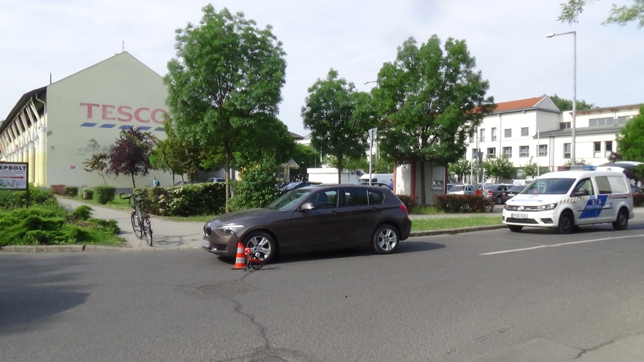 Személygépkocsi és kerékpár ütközött Nyíregyháza forgalmas csomópontjában
