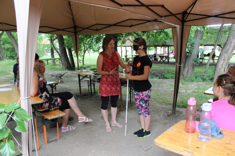 – Táborozóink játékos, mégis kihívást jelentő feladatok segítségével ismerhették meg a vakok és gyengénlátók mindennapi feladatait. Kismesterségekhez kapcsolódó kézműves tevékenységek, szagos vagy éppen állatos falufelfedező játékok kipróbálása és kelt tészták készítése mellett, idén sem maradhatott el a népi játékok "olimpiája", amire egész héten gyakoroltak a csapatok – számolt be Baloghné Szűcs Zsuzsanna, a Sóstói Múzeumfalu etnográfus-muzeológusa.
