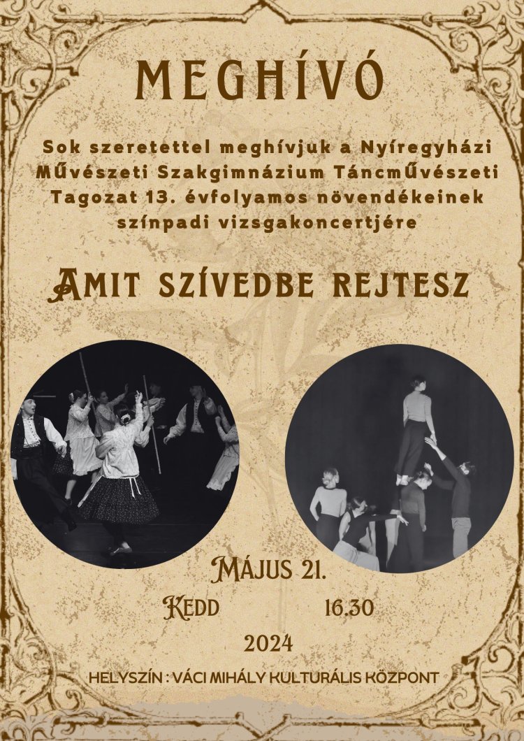 A Nyíregyházi Művészeti Szakgimnázium Táncművészeti Tagozatának 13. évfolyamos, végzős növendékei május 21-én vizsgaelőadást tartanak.