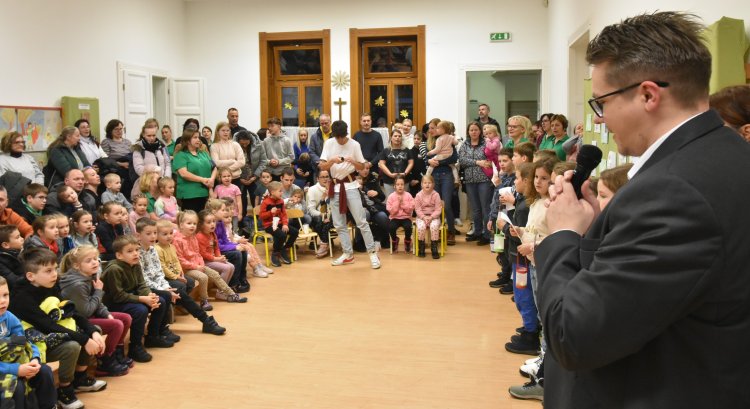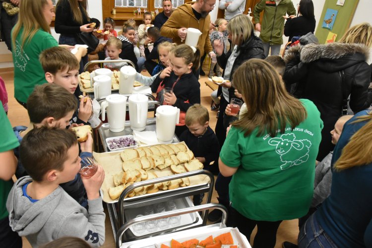 Kora délután az óvoda tornatermében gyülekeztek a csöppségek, ahol Csernus Enikő tanárnő az alsó tagozatos diákokkal Szent Márton-napi, német nyelvű dalokat énekelt. Utána Máté Péter atya, lelki vezető közös imára hívott minden jelenlévőt, majd megnyitotta a rendezvényt, amely az összekovácsolódásra is kitűnő alkalom volt. Libazsíros kenyérrel, sütőtökkel, teával és a gyermekek keze által készített linzerrel várták a szülőket, kedves vendégeket.