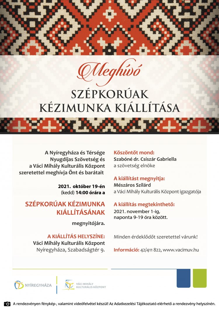 Szépkorúak kézimunkáiból rendez kiállítást a Nyíregyháza és Térsége Nyugdíjas Szövetség és a Váci Mihály Kulturális Központ. A tárlat október 19-től november 1-ig fogadja a látogatókat a VMKK-ban.