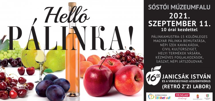 Aki ellátogat szeptember 11-én a Sóstói Múzeumfaluba, azt nem csak kulináris élvezetekkel, népi ízek kavalkádjával, vásárral és szórakoztató programokkal várják, de kiváló minőségű pálinkákkal is az első „Helló Pálinka!” rendezvényen. A Sóstói Múzeumfaluba a rendezvény ideje alatt ingyenes a belépés, s ezen a napon az önkormányzat ingyenes autóbusz különjáratokat indít Sóstógyógyfürdőre.