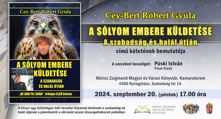 Cey-Bert Róbert Gyula: A sólyom embere küldetése - A szabadság és halál útján című kötetének bemutatójára, melyen az író beszélgetőpartnere: Püski István lesz.