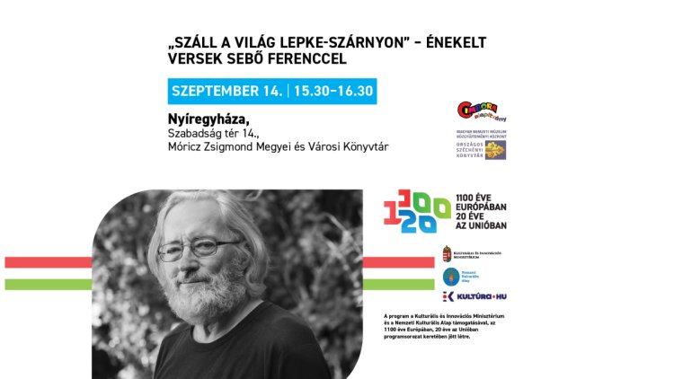 "Száll a világ lepke-szárnyon" - énekelt versek Sebő Ferenccel - nemzet művésze címmel kitüntetett Kossuth-díjas énekes műsorán vehetnek részt az érdeklődők.