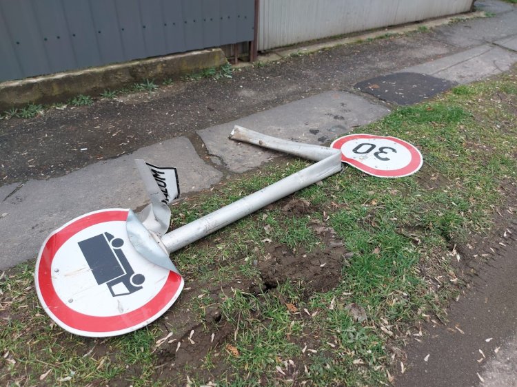Szerdán délután a Kinizsi utcán egy teherautó kitörte a KRESZ-táblákat.