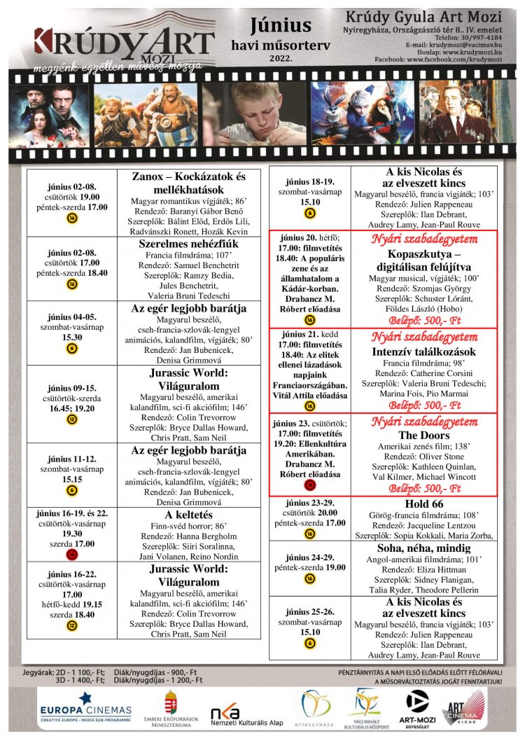 Szerelmes nehézfiúk, Jurassic World: Világuralom - A Krúdy Gyula Art Mozi júniusi filmkínálata