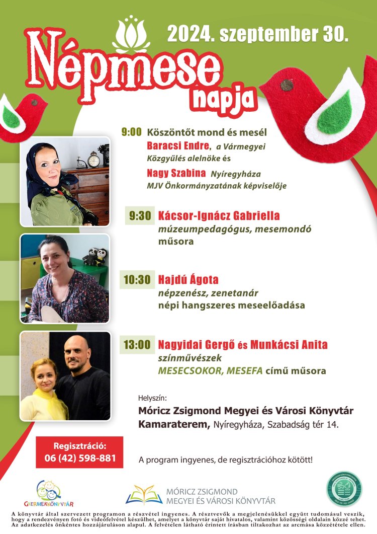 A Népmese napja alkalmából több programmal is várják az érdeklődőket 2024. szeptember 30-án (hétfőn) a Móricz Zsigmond Megyei és Városi Könyvtárba.