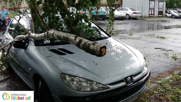 A csütörtök délutáni vihar során Dohány utcán pakoló személygépkocsira dőlt egy faág.
