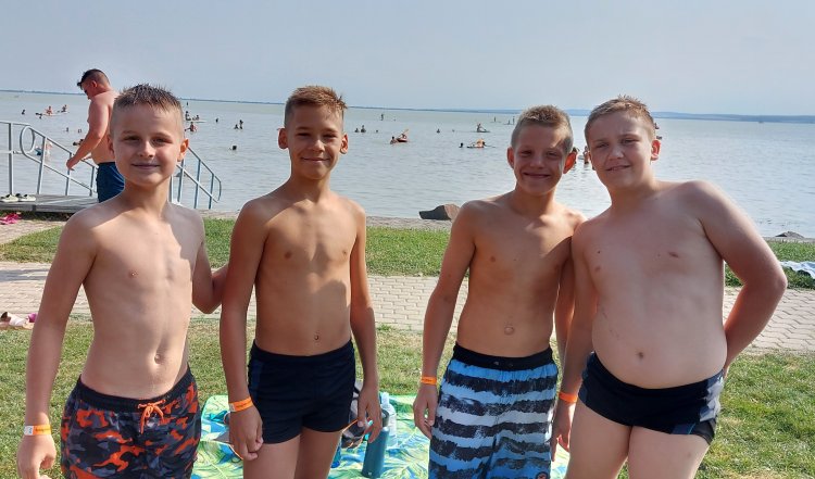 Vasárnap nagy izgalommal keltem és készültem a minden évben nagyon várt szigligeti nyaralásomra. A hosszú utazást követően megérkeztünk a táborba, ahol a kicsomagolás után máris a Balaton hullámai közé vetettük magunkat. Miután visszaértünk a táborba, a szakácsok már finom vacsorával vártak minket. Vacsora után még pingpongoztunk, kondiztunk, hintáztunk, beszélgettünk és játszottunk, majd 10 órakor aludni tértünk. Kicsit még beszélgettünk, majd mindannyiunkat elnyomott az álom…”