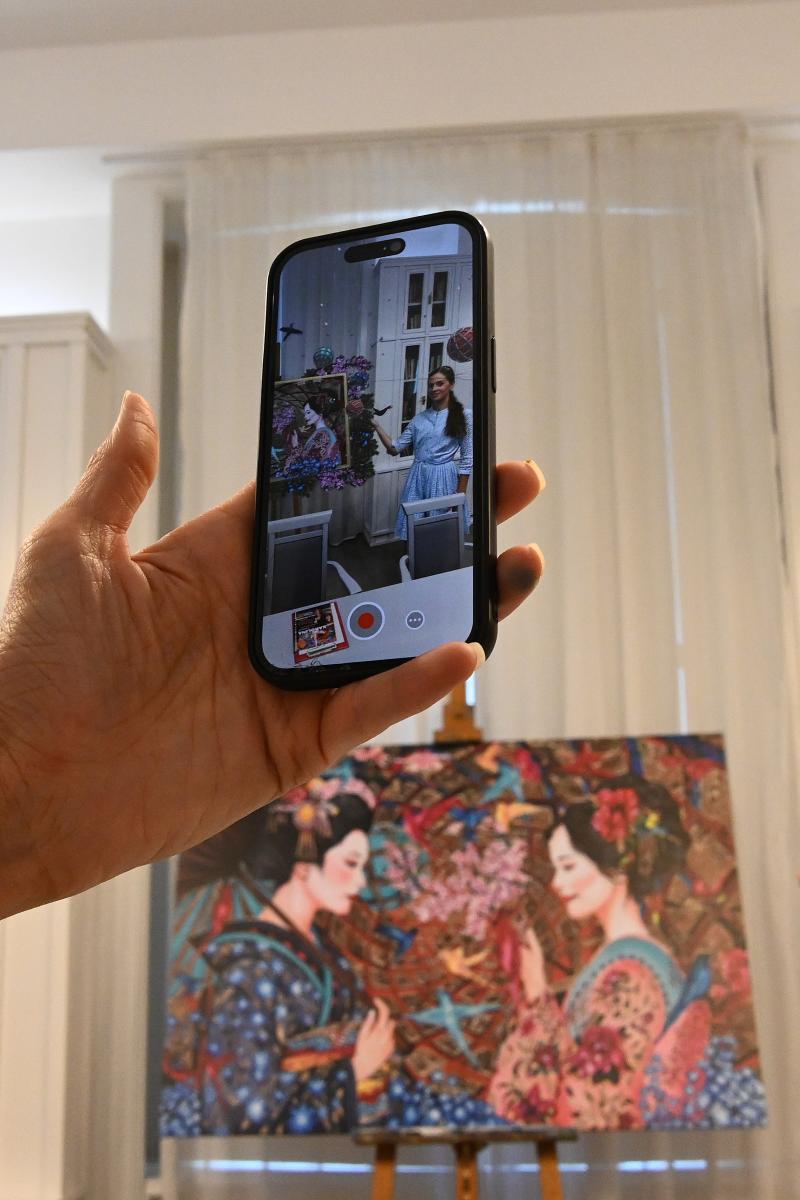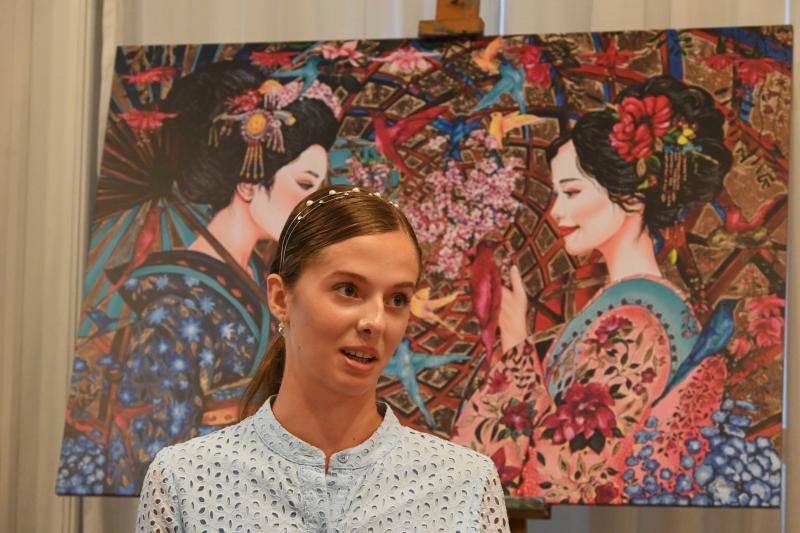 „A mostani kiállításon több mint húsz festményemet mutatom be, és izgatottan várom, hogy a közönség is láthassa őket. Műveim központi üzenetei elsősorban a környezetvédelem, a természet és állatvilág védelme, valamint a fenntarthatóság fontosságára hívják fel a figyelmet. Emellett azonban legalább ennyire fontos számomra a pozitív szemlélet, az élet szépségeinek megmutatása. Ez a szellemiség visszaköszön a képeimen: gyakran alkalmazok visszatérő motívumokat, mint például a geometrikus formák, a gazdag színvilág és az állatfigurák. Ezeken keresztül szeretném érzékeltetni, mennyire értékes és megóvandó a világ, amely körülvesz bennünket”