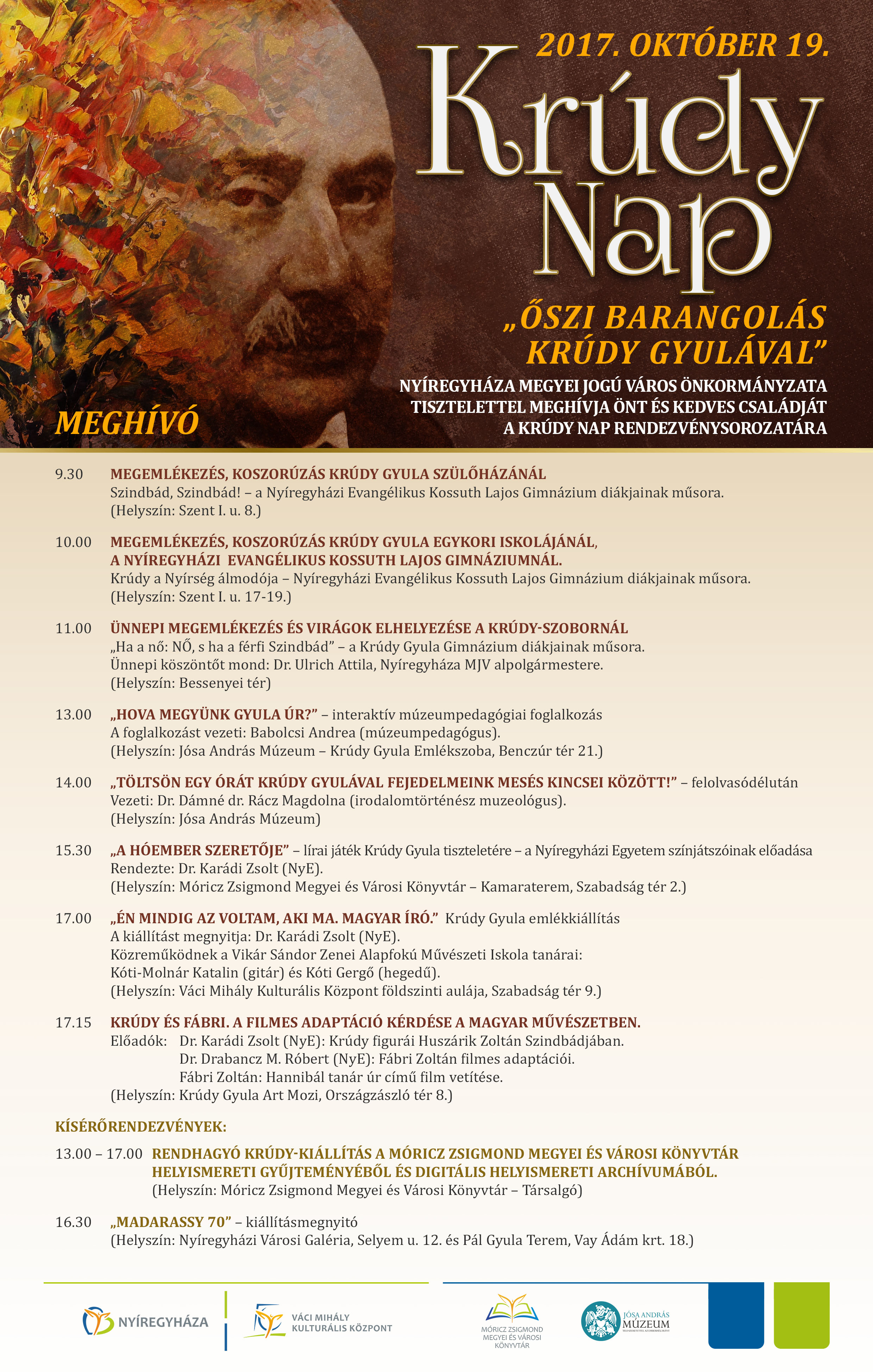 Október 19-én több helyszínen, számos programmal várja az érdeklődőket a „Krúdy Nap” rendezvénysorozat.