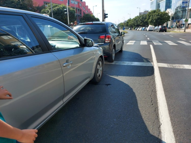 Egy autó forgalmi okokból megállt, a mögötte lévő ezt észlelve fékezett, azonban a harmadik autós szinte fékezés nélkül beléjük rohant és összetolta a járműveket. Személyi sérülés nem történt, az anyagi kár azonban jelentős.
