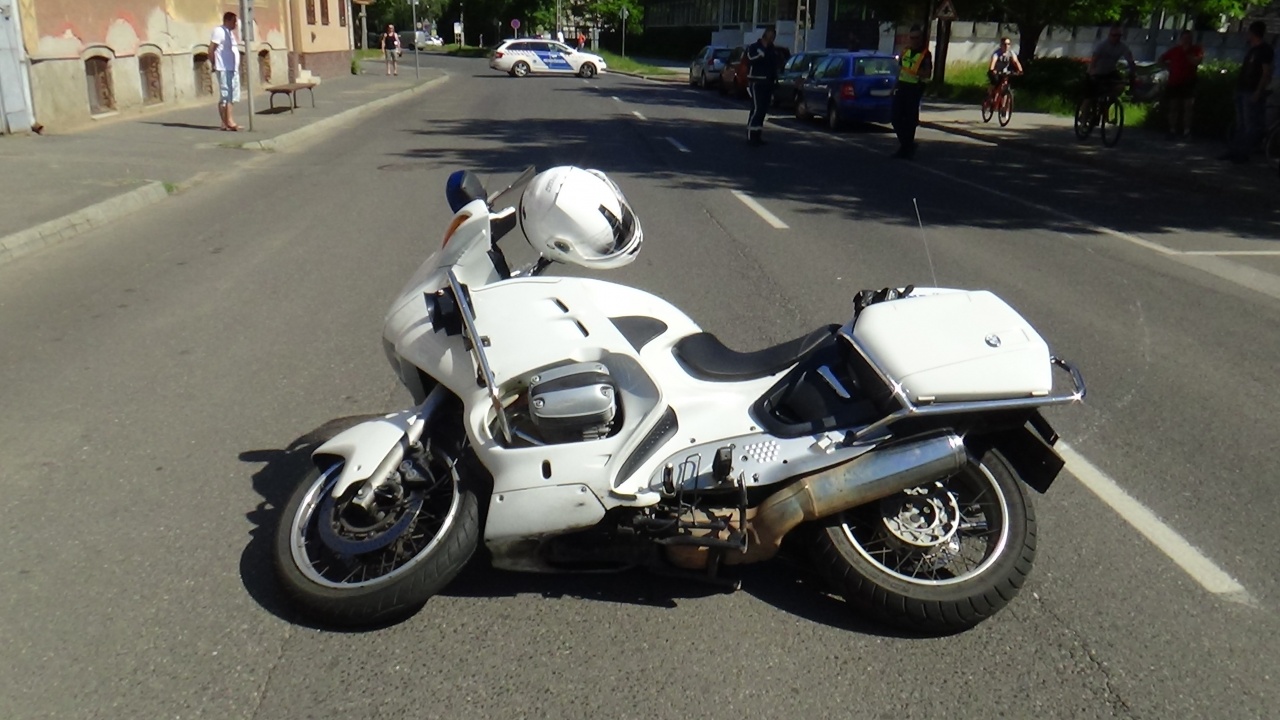 Szirénázó motoros rendőr borult a Vasvári Pál utcán, vizsgálják a baleset körülményeit